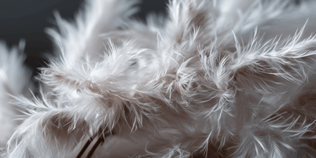 - 介紹:羽絨取自鴨、鵝等水鳥胸腹部的細緻絨毛,是極為優質的天然保暖材質。其立體的球狀結構能鎖住大量空氣,形成良好的隔絕層,不僅能有效阻擋冷空氣滲入,還能保持蓬鬆輕盈。此外,羽絨缺點是價格較高,保養方式不易,且對動物羽毛過敏者須謹慎選擇。